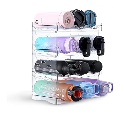 Do you have a house full of water bottles too? Ours are all different heights so they fit in the cabinet wierd. This water bottle organizer is the perfect solution as it keeps lids with the bottles and it doesn't matter how tall they are. It's easy to find the bottle you need.