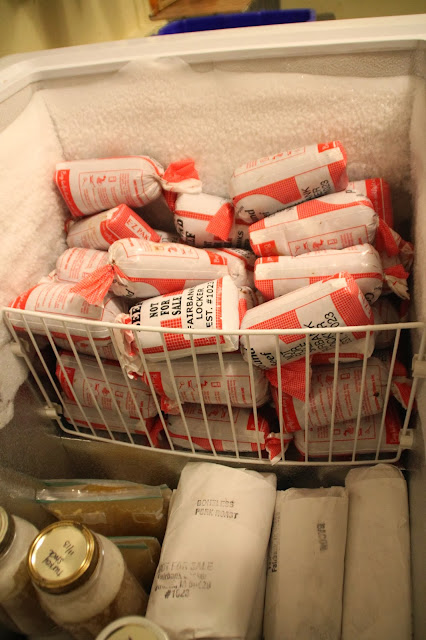 I’m Kelli, and I run the show over at The Sustainable Couple. We’re going to talk about beef and pork today. I received emails from two readers a few weeks ago (after I posted a little photo of the inside of our freezer) asking about how we purchased our meat in bulk. They expressed interest in contacting their local farmers, but felt uneasy because they’ve never placed an order at a meat locker before. It wasn’t securing the meat from the farmer that freaked ’em out, it was figuring out what to do with the meat at the locker!