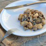 While the gnocchi are cooking, add the half and half to the turkey mushroom sauce and simmer only until warmed through.