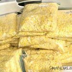 I recommend freezing 4 cups of corn in a quart sized freezer bag because that's the perfect portion size for my family of six. You can also freeze smaller portions if you prefer.